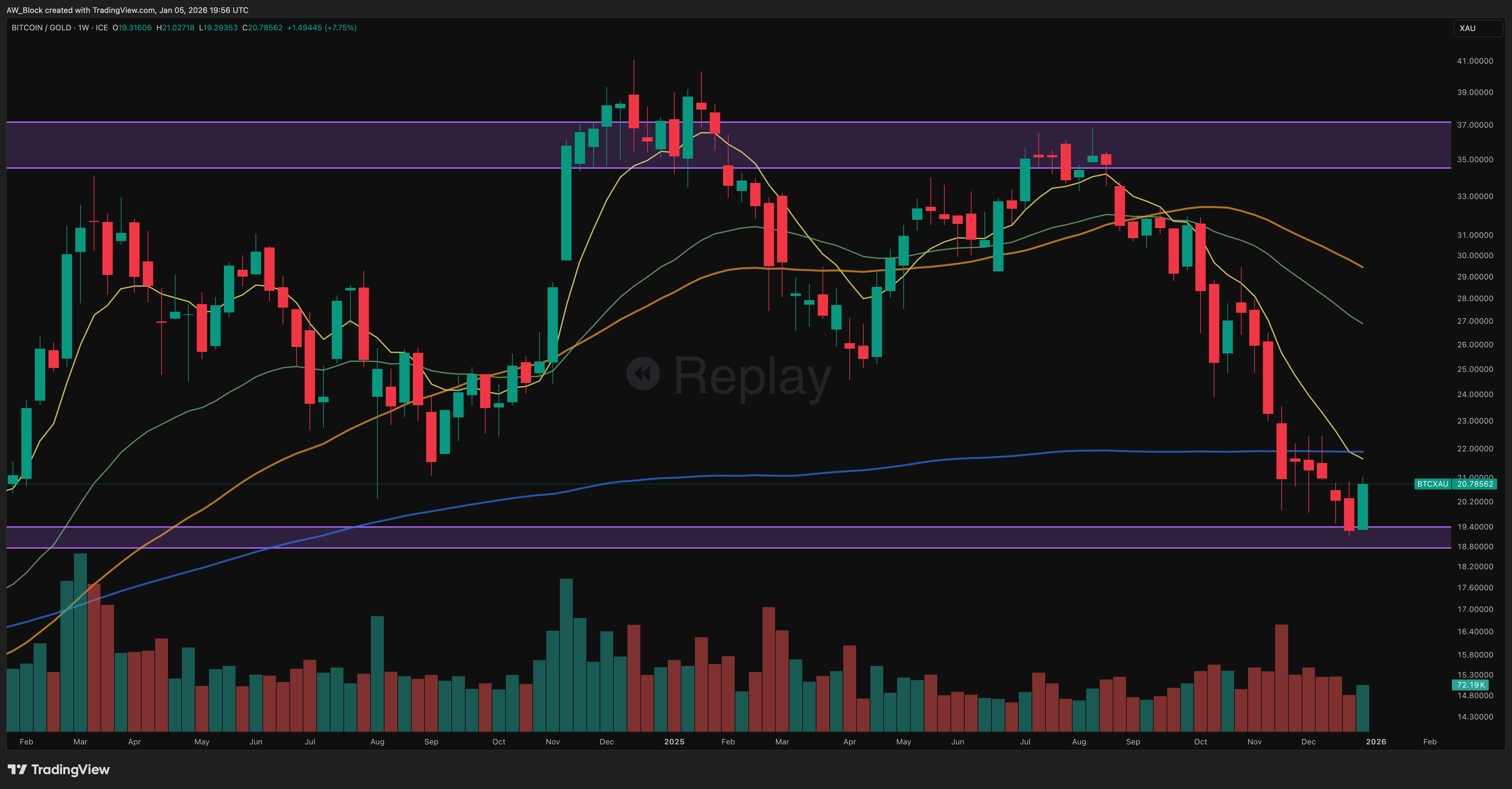 BTC/XAU has completed its downside objective and is now testing the lowest-probability zone for trend continuation. While the weekly trend remains bearish, the market is no longer in an optimal position for aggressive downside bets. The next few weekly closes will determine whether this level becomes a base or merely a pause before further weakness.